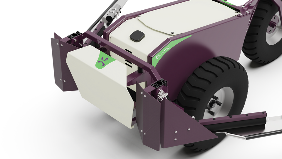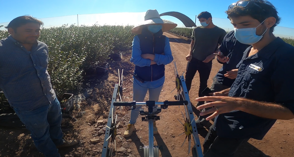 Innovative technology mimics the buzz of the bumblebee, blueberries’ natural pollinator, using mechanical arms mounted on an electric vehicle that vibrates the stems to release pollen grains on the flower’s stigma. Years of research and testing have been conducted to calibrate the speed and strength of the vibration for optimal efficiency.